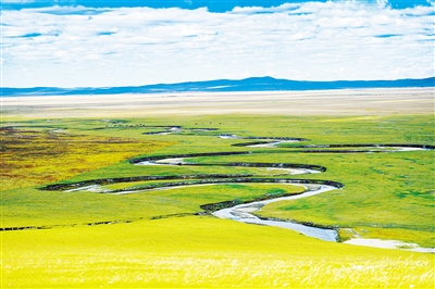 乌拉盖管理区位于内蒙古自治区锡林郭勒盟东北部,金秋时节,这里的草原换上了金黄色的盛装,湛蓝的天幕下,牛羊如珍珠散落,呈现出独特的美丽景观。