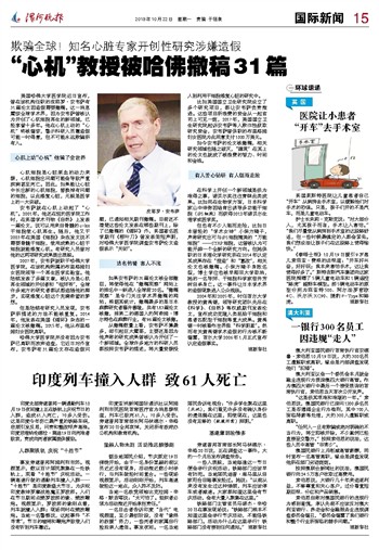 哈佛大学医学院并没有因为安韦萨已离职而放弃追查,它近日对外宣布,安韦萨有31篇论文存在造假问题,已通知相关期刊撤稿。目前还不清楚这些论文发表在哪些期刊上,除了已撤稿的《循环》外,英国著名医学期刊《柳叶刀》曾发表简短声明,对哈佛大学医学院调查安韦萨论文造假表示“关切”。