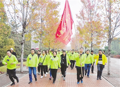 11月8日上午,为庆祝第十九个中国记者节,由中共漯河市委宣传部、漯河市新闻工作者协会主办的“我们走在大路上”健步走活动在市区红枫广场举行,我市100余名记者参加。活动展示了我市新闻工作者良好的精神风貌,鼓励记者积极参加健身活动,养成良好生活习惯,以饱满的精神状态讲好新时代漯河故事。本报记者 齐 放 摄