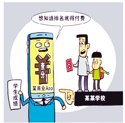 近日,安徽亳州风华中学一位学生家长向媒体反映,在老师的推荐下,很多家长在手机上安装了一个叫“好分数”的软件,主要功能是查分,学校联考、班级考试成绩出来后,家长需要登录该软件才能查看孩子的各科分数,如果还想知道孩子的考试名次,就需要付20元钱。(据新华网)