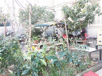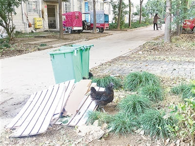 随后,记者在小区内走了一圈,发现小区路面上有纸屑等垃圾;绿化带内杂草丛生,放置着鸡笼;部分绿地变成菜园;很多楼道内堆放着杂物,墙体上贴有很多小广告;楼下的空地也堆满了杂物,车辆乱停乱放;存在私搭乱建现象;小区后门没有上锁,也没有保安看守。