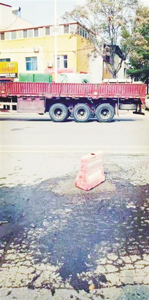 随后,记者采访了反映此事的李先生,他告诉记者:“这个坑估计有一个多月了,我经常走这条路上班,遇到几次都是由于车辆急转发生的小事故。因为这个坑在快车道,司机很难注意到,往东还有几处破损路面。”