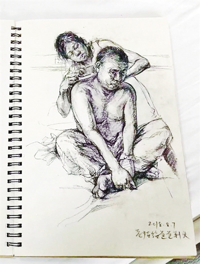 王天月把记录父亲抗癌过程的素描整理成视频发到了网上。“他从98公斤瘦到65公斤,从啥都爱吃,到现在什么也吃不了,我想记录下和爸爸在一起的每一天,也珍惜和他在一起的每一天。”