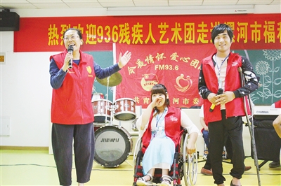 “我们去年帮助他们组建了残疾人艺术团。”王予说,“我们在帮助残疾人的时候,发现一些人具有艺术特长,就请专家对他们进行培训。”