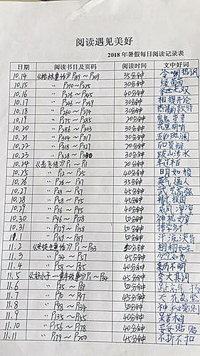 “女儿每天早晚按时读书并填写表格,我都会给她积分,一定时间后把这些积分变成零花钱给她。积累到一定数额,用这些钱带她去旅行,或者给她报喜欢的才艺课。”刘明说,孩子看着越来越厚的表格,想到自己每天阅读了那么多内容,也很有成就感。用积分换来的钱可以在周末来个短途旅行,也让她对读书更加积极了。