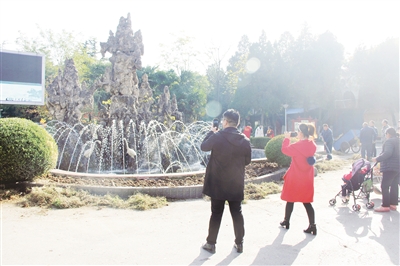 11月22日上午,记者来到市人民公园。刚进入公园大门,记者看到在大门口的假山景点处,围了不少市民。记者走近发现,原来假山景点周围的喷泉,全部都打开了。“这喷泉一打开,就是好看。”“宝贝,妈妈又找到了小时候的感觉。”“真是又见童年啊。”……市民们一边围着喷泉拍照,一边感叹。