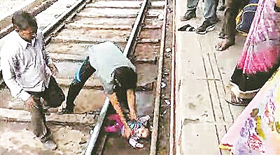 近日,印度北方邦马图拉火车站一名一岁女婴掉落铁轨,一列火车从她上方驶过,她竟安然无恙。