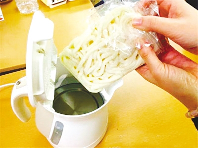 1.事先买些面块,需要吃的时候取一块放进电热水壶中。