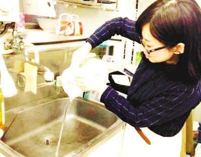 3.按下电热水壶的开关等待水开,这段时间你也可以洗个脸刷个牙。