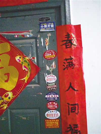 “这些开锁的小广告实在是太可恶了,都贴到防盗门上了,撕都撕不掉,门上弄得脏兮兮的。”4月15日中午,在市区泰山路海河小区,市民赵先生一边清理自家防盗门上的小广告,一边表达着自己的不满。