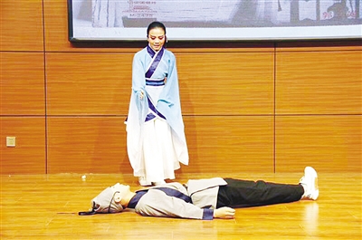 同时,穿插其中的一曲《水调歌头》让大家听得如痴如醉,成为整场演出的亮点。豫剧《穆桂英挂帅》再次将活动推向了高潮。本次课本剧展演活动以其精彩的表演、独到的演技、强烈的舞台效果博得了一致好评。演出在同学们热烈的掌声中圆满结束。曹秋玲