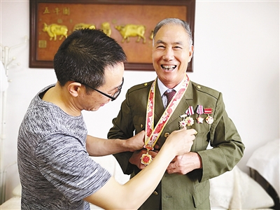 本报讯(文/图 记者 王 辉)“在新中国成立70周年之际,国家为我发放纪念章,我非常的激动,深深地感到党、国家和军队对我的亲切关怀。”9月28日上午,在嵩山路644号院一普通居民楼里,65岁的王昆仑老人激动地从市退役军人事务局工作人员手中接过“庆祝中华人民共和国成立70周年”纪念章,郑重地挂在了脖子上。