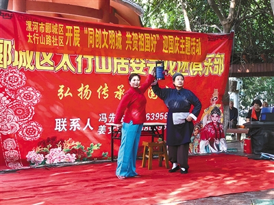 9月27日下午,郾城区太行山路社区在黄河广场开展“同创文明城 共贺祖国好”迎国庆活动。见习记者 党梦琦 摄