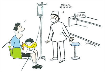 近日,南京某儿童医院在急诊输液室旁开设了一个“作业吧”,方便来吊水的学生写作业。患儿家长感到暖心,认为医院服务体贴周到;也有网友吐槽,医院一片好心,未必就是“好事”,让孩子带病学习不宜提倡。(据中新网)