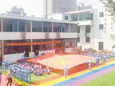 为庆祝新中国成立70周年,9月28日,郾城区淞江社区开展爱国教育为主题的亲子活动。本报记者 潘丽亚 摄
