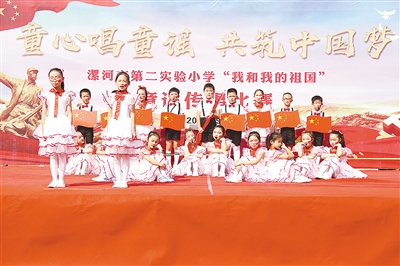 为加强未成年人思想道德建设,激发爱国情感,9月29日,市第二实验小学举行“传唱优秀童谣”歌咏比赛。本报记者 齐 放 摄