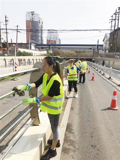 9月28日,市政建设和公用服务中心组织人员对市区主要道路涵洞的墙面和护栏进行清洗保洁。