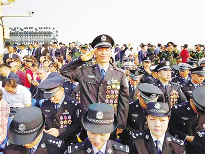 10月1日,陈晓磐起了个大早,8点左右,他和全国各地公安战线的优秀警察代表一起集合,步行走到长安街的观礼台。“观礼台上,我们身着警服,警服上缀满勋章,成为一道亮丽的风景。”陈晓磐自豪地说,2015年他在这里参加了纪念抗日战争胜利70周年阅兵观礼,本以为第二次参加阅兵观礼,心情可能会比较平静。但一进入现场,他就不由自主地被周围的一切感染、感动,依旧心潮澎湃、热血沸腾。