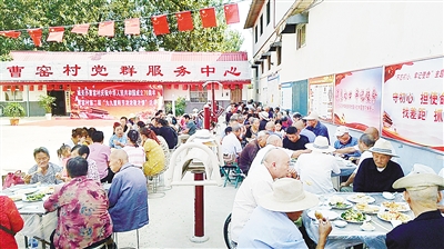 当天上午8点多,得知村里举办敬老活动,不少村民早早来到广场上。记者了解到,村委会邀请村里75岁以上的63位老人参加活动。上午9点,活动正式开始。老人们首先观看了文艺演出。社区艺术团、曹窑村盘鼓队的文艺志愿者表演了精彩的文艺节目。盘鼓、戏曲等演出,赢得阵阵掌声。与此同时,村委会还请来理发师,为参加活动的老人们理发。