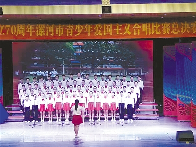 日前,在庆祝新中国成立70周年,全市爱国主义歌曲合唱比赛中,郾城区第三初级中学荣获第一名。 孟祥杰 摄 |