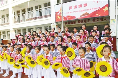 | 日前,源汇区受降路小学分校举行“国旗飘飘”——庆祝新中国成立70周年合唱比赛。孙银凤 摄 |
