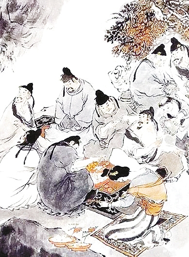 南北朝,《荆楚岁时记》云:“九月九日,四民并籍野饮宴。”文中提及的“饮宴”活动,是由先秦时庆祝丰收的宴席发展而来的。到了这个时候,求长寿及饮宴构成了重阳节的基础。