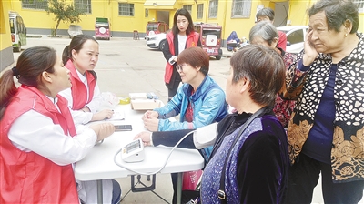 →10月9日,在市区银鸽大道碧水湾小区,召陵区东方社区联合社区卫生服务站为居民义诊,普及疾病预防知识。