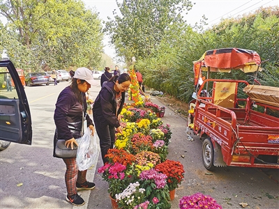 在金山公墓外的道路上,记者看到,不少市民陆续进入公墓祭扫,路边有一些商贩在出售祭扫用品。“现在大多数人来了都买花,很少人再像以前那样烧冬衣、烧纸钱了。”一位商贩对记者说,近年来祭扫用品多以绢花和鲜花为主,所以这些用品的销量很不错。