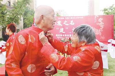 “现在老龄化越来越严重,很多老人需要陪伴。”小区物业公司相关负责人对记者说,他们的工作人员陪伴这些老人时,发现不少老人结婚时没有举行过婚礼,觉得这对老人来说是一个缺失,所以就想着为这些老人补办一次。同时也希望通过这个活动,促进物业与业主间的关系。