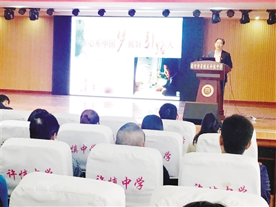 10月27日,在许慎中学,召陵区教育局邀请全国劳动模范、省首批最美教师郭春鹏,做主题为“心系中国梦 做好引路人”的报告。