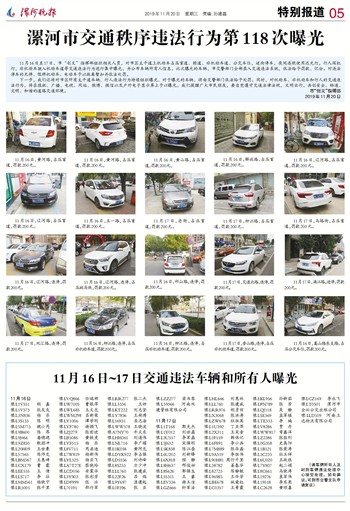 11月16日~17日交通违法车辆和所有人曝光