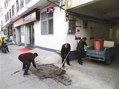 11月20日上午,郾城区龙塔街道华山社区对田庄老街破损路面进行全面整修,方便居民出行。