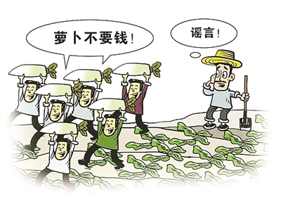 近年来,类似哄抢财物事件时有发生。在这其中,既有“羊群效应”的火上浇油,有“法不责众”的思维定势,还有“大家都在拿,不拿白不拿”的自欺欺人。对于哄抢行为,轻信谣言不是免责的挡箭牌。应视强拿硬要、哄抢等具体情形之不同,依据《治安管理处罚法》有关规定,处以行政罚款、拘留;有网民起哄而来,也应依法予以追责。同时,对于制造和散布“萝卜免费”谣言者,更应依法追究治安违法责任; 如果情节严重构成犯罪的,依法追究刑事责任。唯有法律向每起哄抢事件的参与者“亮剑”,爱贪便宜、法不责众的心理才不会有市场,也才有望终结“谣言+哄抢”式的闹剧。