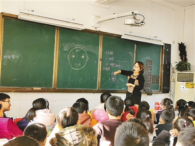 12月4日,源汇区受降路小学分校举办作文教学研讨课。图为吴小娜老师主讲的作文课——《有趣的画鼻子游戏》。吴晓娜 摄
