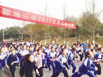 日前,郾城区第三初级中学举行冬季长跑比赛。