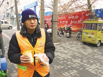 “今天的早餐不错啊,油条、茶鸡蛋、豆浆。”张大爷领到冒着热气的早餐后,坐在温暖的环卫工驿站里一边休息,一边进食。“我经常四五点起来,7点左右完成第一次清扫和垃圾清运。忙完后,就该上午的保洁了,时间紧张得很,根本没时间回家做饭吃饭。”张大爷告诉记者,以前他都是带着干粮来上班,现在每天都有热乎的爱心早餐,这让他心里很温暖。