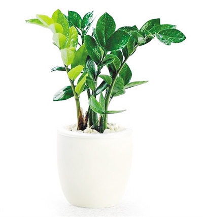 最后还有学名雪铁芋的金钱树,是一种四季常绿的多年生草本植物。金钱树的枝叶青翠欲滴,枝叶呈革质,很挺拔,而且形状像金钱一样,因而有着招财纳福的说法。