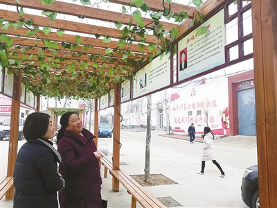 黄亭子、绿长廊……1月13日上午,记者在市城乡一体化示范区黑龙潭镇坡杨村村委大院前看到,一排30多米长的文化长廊成为该村一道独特的风景线。