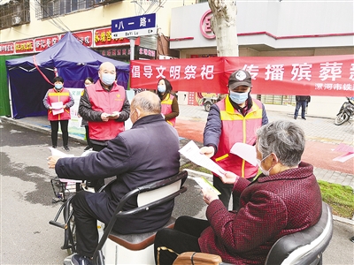 金山社区居委会工作人员告诉记者,他们通过走访宣传、微信群推送等方式,向辖区居民发出倡议,倡导大家不到殡葬服务机构、公墓祭扫,不采用露天焚烧冥币、纸钱、纸扎等方式进行祭祀,避免祭祀带来人员扎堆聚集,降低交叉感染风险。号召居民通过关注“漯河民政”微信公众号,进行“云祭扫”,利用线上祈福、寄语、献花等形式,表达对亲人的思念之情。