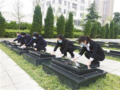 4月1日上午,市烈士陵园内庄严肃穆,8名工作人员代表烈士亲属举行祭扫活动。