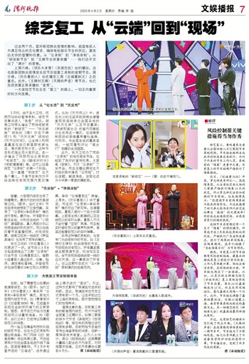 据悉,目前复工的节目组都有风险控制指南,最基本的措施是复工前进行身体检查、工作人员佩戴口罩、场地全面消杀等。在现场控制方面,节目组也想出了一些招数。比如,江苏卫视王牌婚恋综艺《非诚勿扰》复工录制后修改了节目设置,原本24位嘉宾缩减为12位,而且采用间隔站位,每位嘉宾之间隔一个位子。此外,节目组也调整了嘉宾招募标准,近期以招募上海、南京等离录制地较近的嘉宾为主。另一档婚恋综艺《新相亲大会》的嘉宾招募同样循此原则。