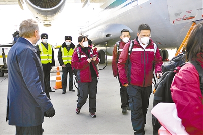 4月11日,中国政府赴俄罗斯抗疫医疗专家组成员抵达俄罗斯首都莫斯科。