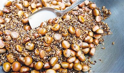 在火焰热辐射作用下,炒锅温度高达数百摄氏度。栗子外壳紧贴着炒锅,由于栗子壳的热导率极小,内外温差很大,短时间内栗子仁不会熟透。但是栗子壳很薄,温度升高很快。这样一来,往往栗子壳已经炭化,而栗子仁仍未熟透。加入大量石子,石子质量很大,热导率介于铁锅和栗子壳之间,能吸收大量的热量,温度却不会升高太快,这样栗子仁就有足够的时间在适宜的温度下被炒熟了。