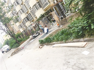天安家园小区南门,住户把绿化带变成自家菜园和通道。