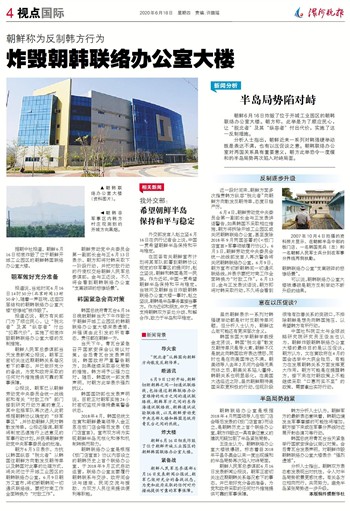 朝鲜6月16日彻底炸毁了位于朝鲜开城工业园区的朝鲜韩国联络办公室大楼。