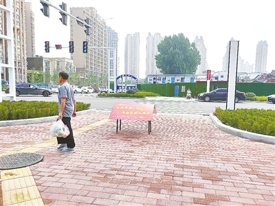 6月19日,家住市区丹江路的李先生向记者反映,在丹江路与王屋山路交叉口,有商家将广告牌摆在安全岛上,影响通行。