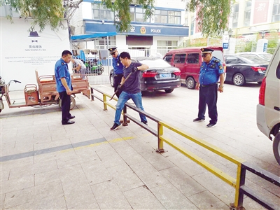 当天上午10点多,记者在现场看到,铁围栏位于市公安局顺河分局老街警务队附近。工作人员分工合作,用工具将这些约半米高的铁围栏拆除。