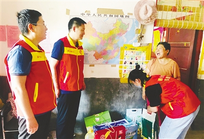 6月24日,市爱卫中心组织党员志愿者来到市城乡一体化示范区姬石镇姬石村,走访慰问优秀党员和生活困难党员。 本报记者 王 培 摄