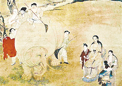 明清时期京城有一个节令习俗叫“伏日洗象”,清代画家丁观鹏的《乾隆皇帝洗象图》就描绘了此景。