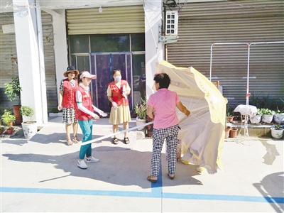 8月17日上午,郾城区龙塔街道淞江社区组织志愿者,对辖区内各商户门前乱堆乱放的物品进行清理。